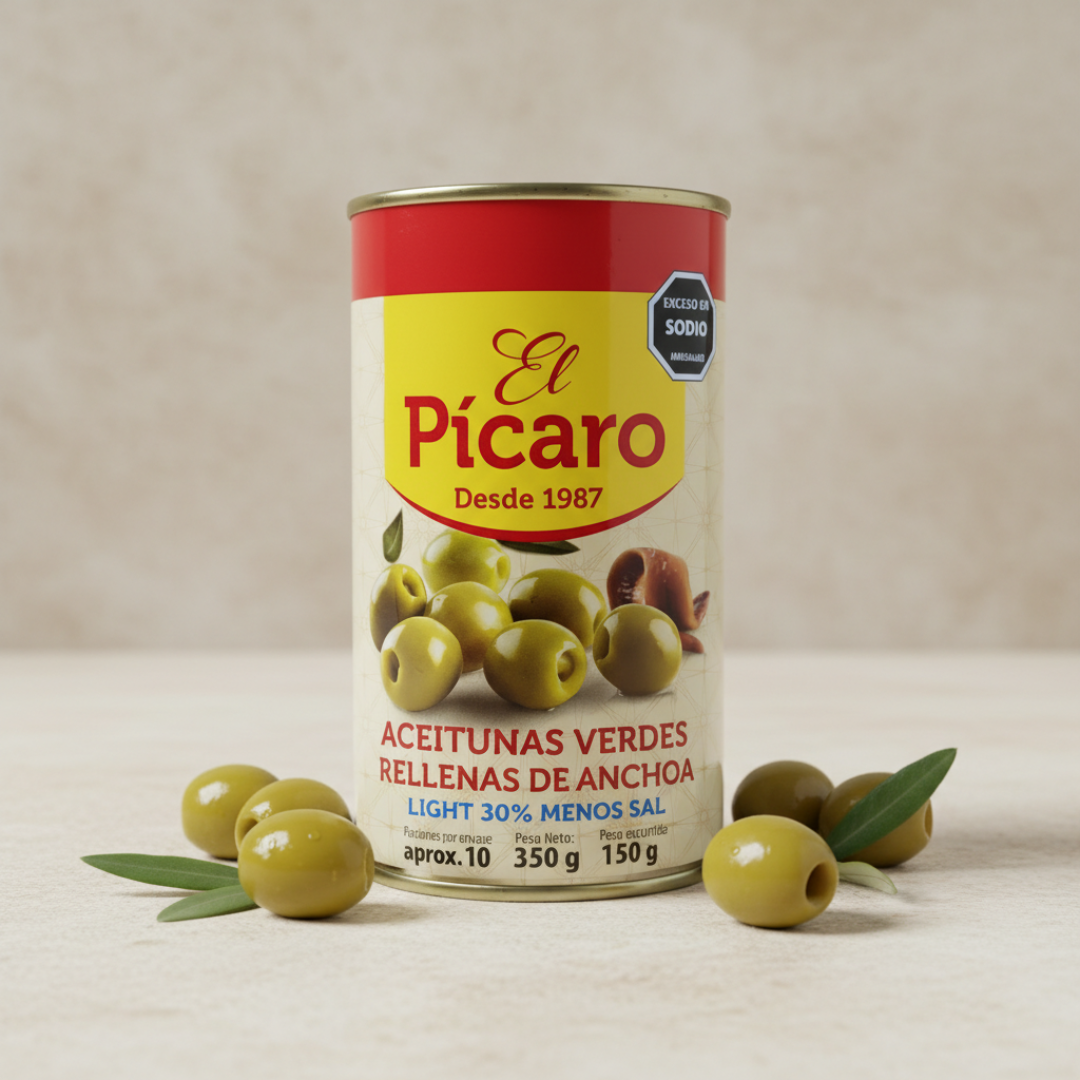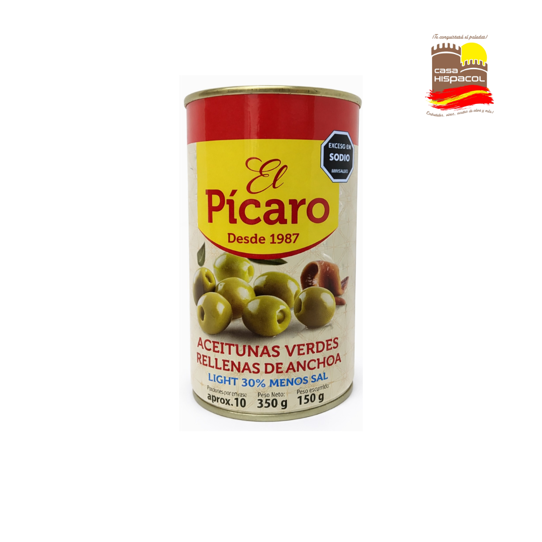 Aceitunas rellenas de Pimiento   EL PICARO  350 Gr, sabor auténtico.